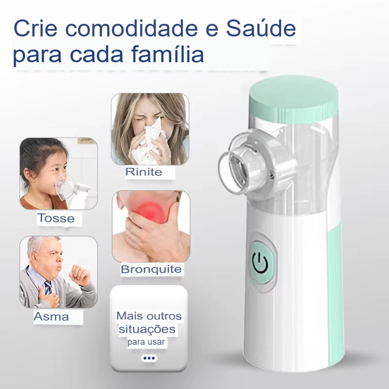 Com design ergonômico e fácil de usar, o nebulizador portátil é extremamente prático: basta adicionar a medicação indicada e ligar o aparelho. Seu baixo consumo de energia e possibilidade de uso com pilhas ou cabo USB tornam-no ainda mais versátil. É o aliado perfeito para quem deseja tratamento rápido, seguro e sem complicações .